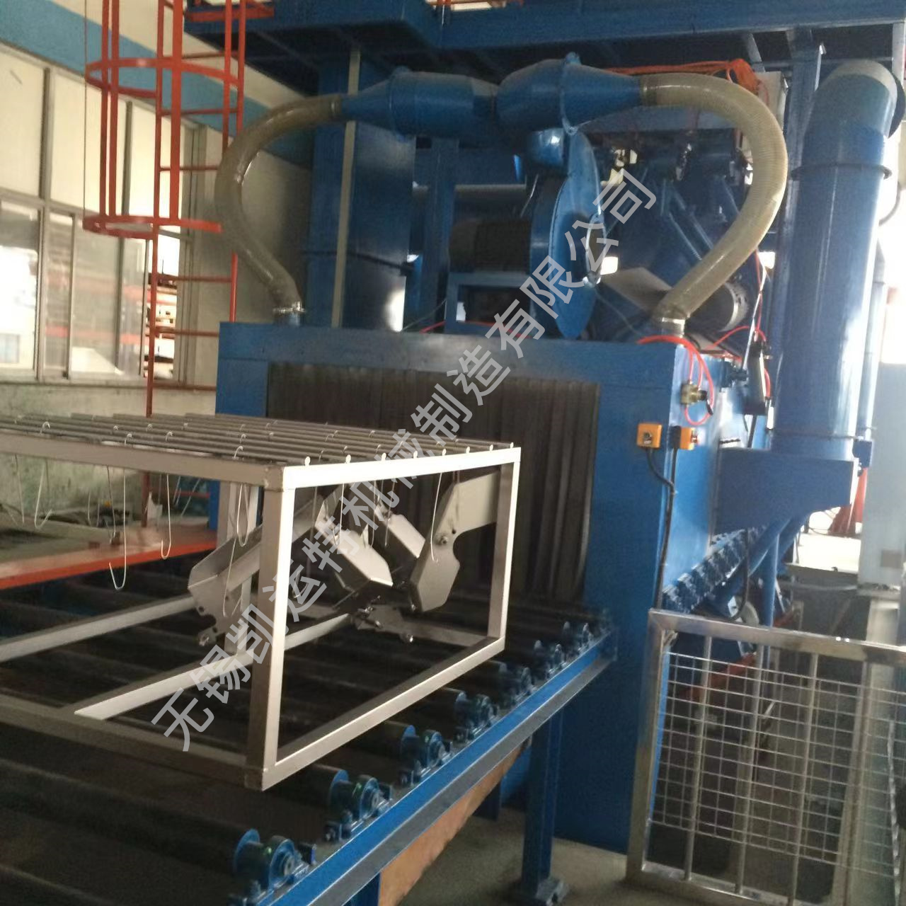 噴砂房左右兩側(cè)各配有一臺(tái)電動(dòng)工作小車,方便操作員噴砂作業(yè),整個(gè)噴砂房?jī)?nèi)襯耐磨損、降噪音的橡膠襯板